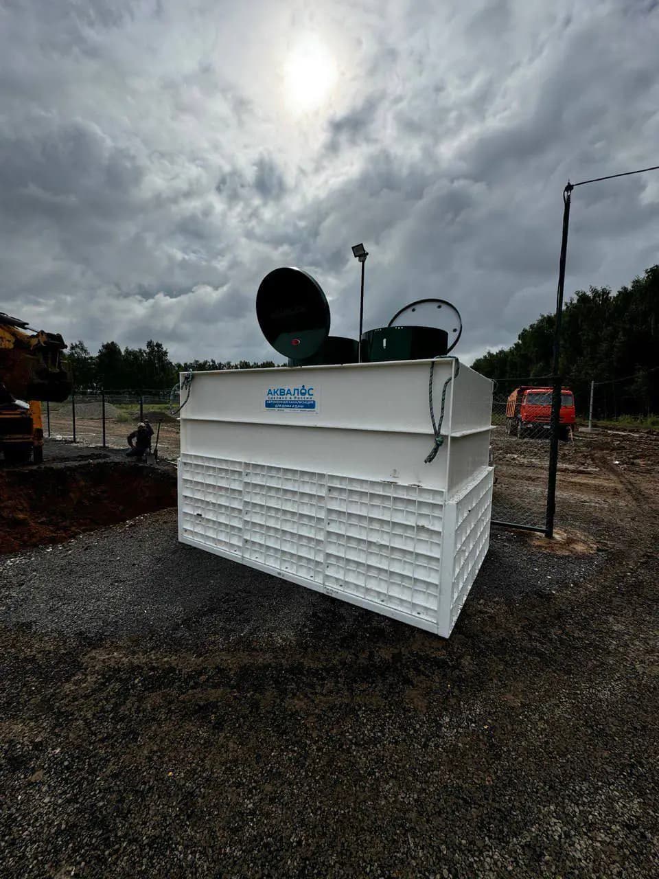Летом 2023 года к нам обратились представители компании, которая строит новый гольф-клуб в Домодедово. На участке активно шли строительные работы: бытовки, техника, рабочие — а централизованной канализации, конечно, не было. Требовалось решение, которое обеспечит приём стоков от 50 человек, будет работать без перебоев и при этом не разорит бюджет на этапе стройки. Мы предложили станцию «Аквалос 50» — промышленную систему биологической очистки сточных вод, которая идеально подходит для таких задач. Эта модель компактна, проста в обслуживании, а по соотношению «цена-качество» — оптимальный вариант для временных, но интенсивных нагрузок.